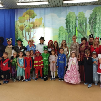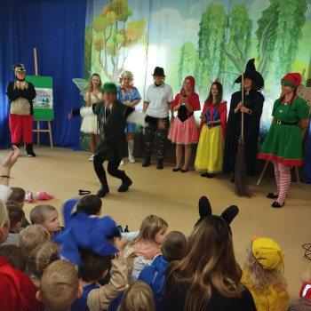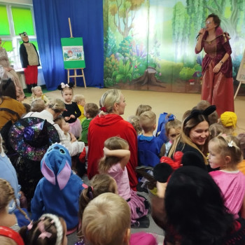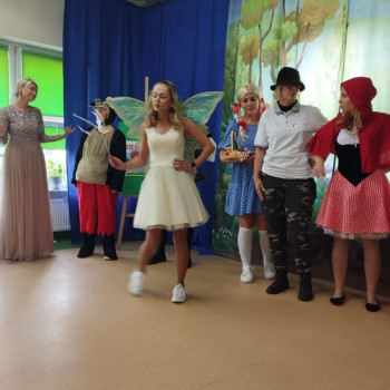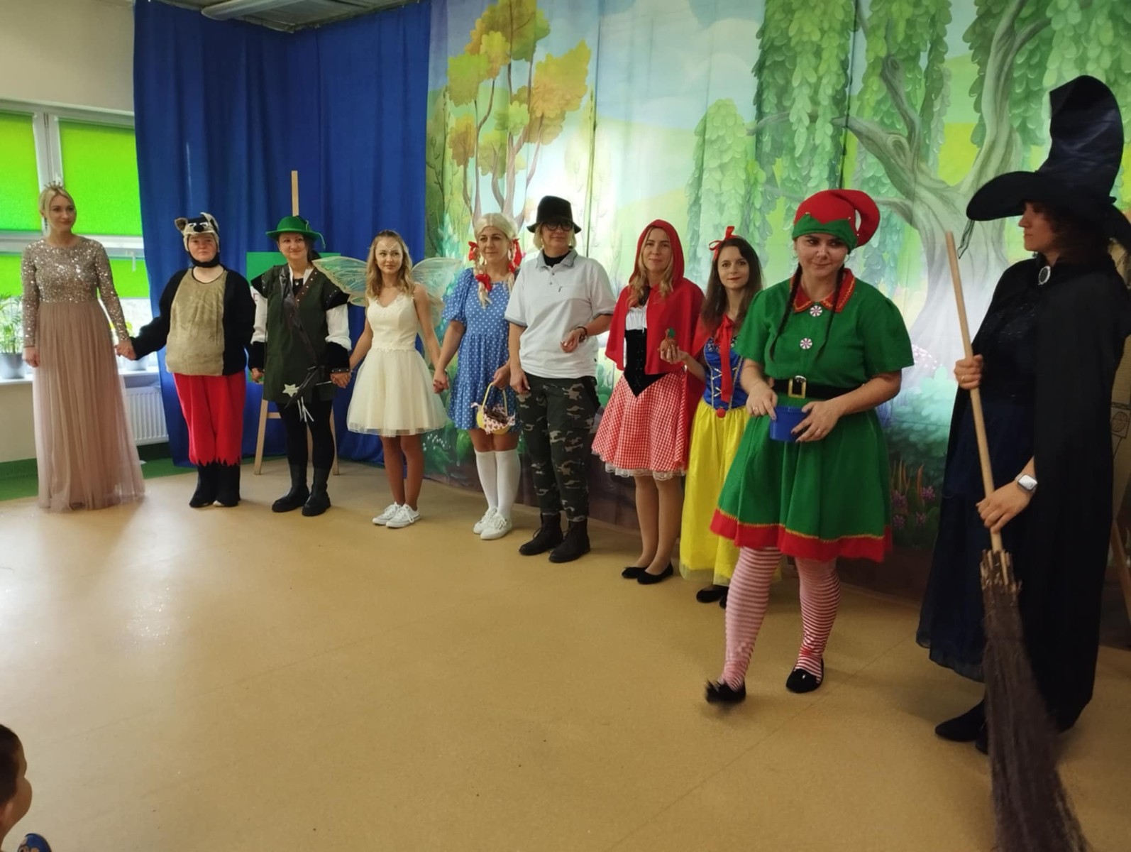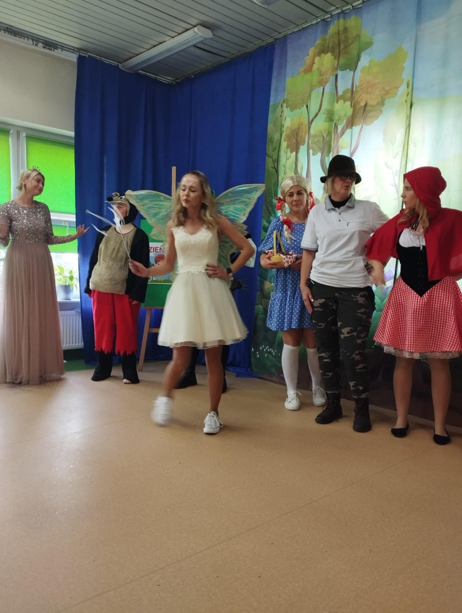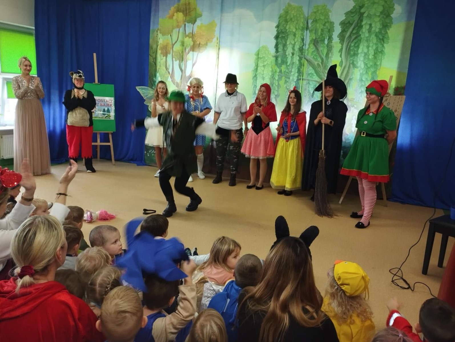 Z tej okazji nauczyciele przygotowali dla dzieci inscenizację pt. „Zamieszanie w Bajkolandii”, w której bajkowi bohaterowie spotkali się w niezwykłych, pełnych humoru okolicznościach.